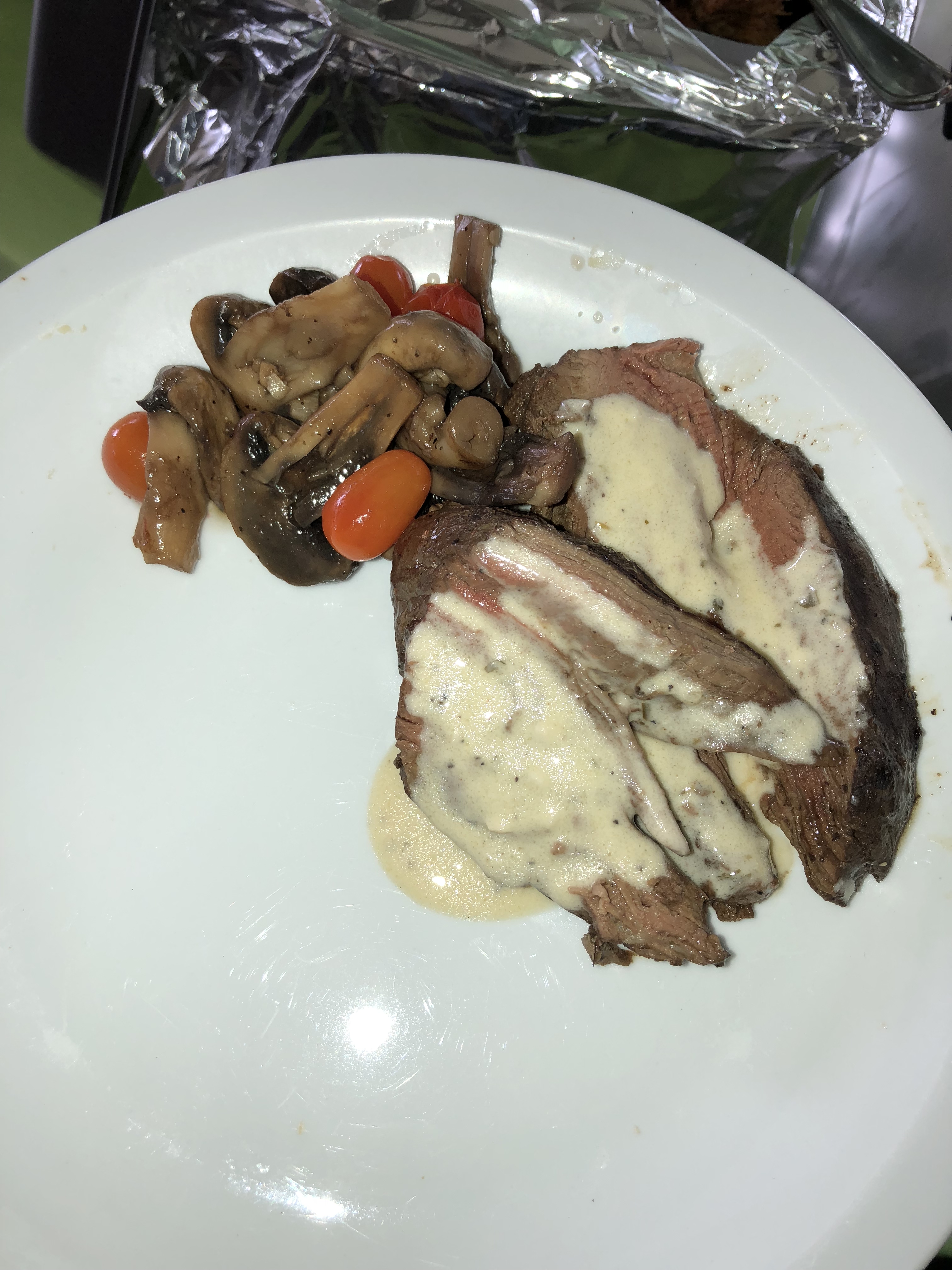 Lomito con salsa de ajo y especias.